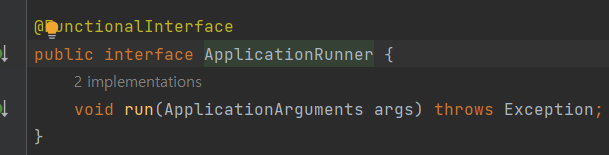 ApplicationRunner 인터페이스는 스프링 부트에서 제공하는 인터페이스이다.