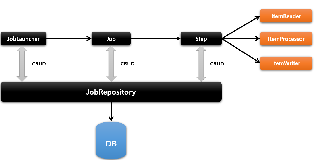 -JobLauncher, Job, Step 구현체 내부에서 CRUD 기능을 처리함