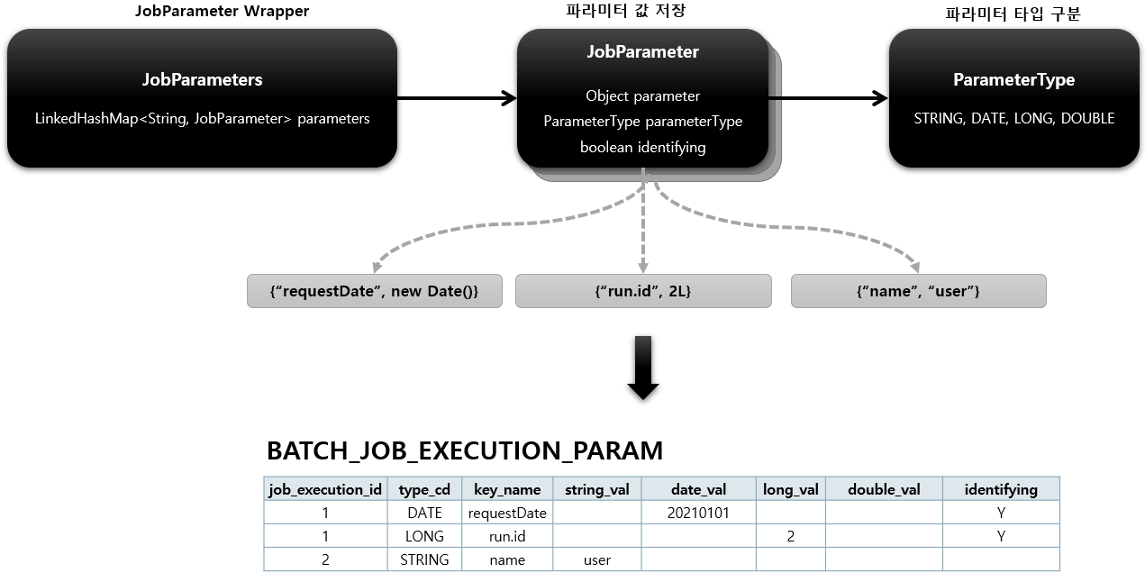 -Job과 함께 실행되는 JobParameter 정보를 저장